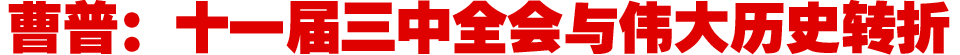 | [曹普]所以,综合起来说,十一届三中全会召开,改革开放政策的实施,我觉得是双重逼迫的结果:一是国内的困局,一个是外部竞争的压力,促使我们必须要改革,要寻找一条新的建设社会主义、使国家繁荣富强的道路。[05-09 09:42] |