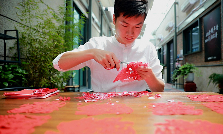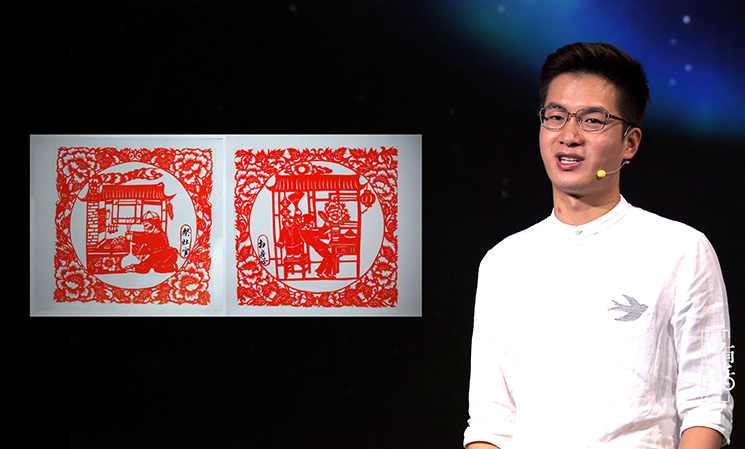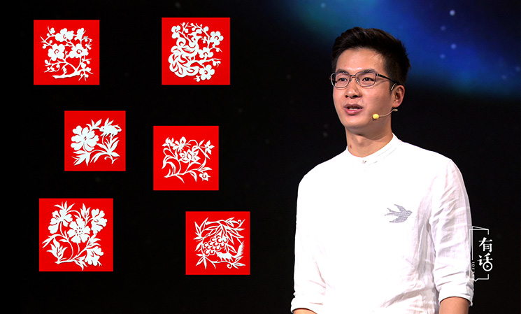 作为一个90后的剪纸传承人,就要剪一些有新时代特点的剪纸作品。我擅长的是即兴创作、脱稿剪纸,速度就是快。我们会了那些传统的图案之外,还要能够看到任何的物体,或者别人给我一个命题就能即时创作。搞剪纸创作一定要丰富自己的知识面,这样脑海中才会有更多的画面跟场景。我感觉剪纸是让我用纸和剪刀在对话,把我的情感通过纸释放出来。其实是一种静修,或者自我的享受。我以后要开展的工作,或许是要承担着怎样让剪纸在00后、10后、20后这些年轻一代的未来人,怎么能认识我们这种传统艺术,这是我一生要去做的事情。