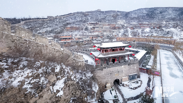 俯瞰暴雪过后的娘子关全景。古城堡依山傍水,居高临下,关门两座,护佑四方。杨东/摄