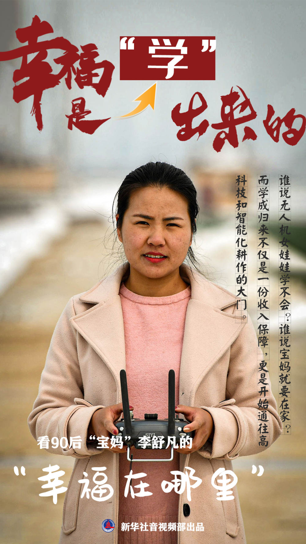 “其实一开始挺难的,身边都没人接触过无人机。我是个‘宝妈’,孩子还比较小。村干部来做工作的时候,家里人都说,这技术一般人能学会吗?”李舒凡说。