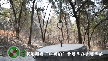 记者了解到,这里的健身爱好者还有绝活儿,有人石锁耍得虎虎生风,但最吸引人的健身绝活儿是秘有仁独创的“豹跑”下山。