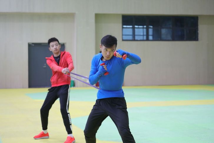 “通过哑铃锻炼肩部耐力,脚腕绑沙袋练习移动速度,用杠铃加强出拳力量和爆发力,配合手靶全面练习。因为是从零开始,要想拿到成绩,必须付出成倍的努力。”赵佳伟说。