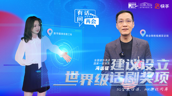 新华网推出两会特别报道《MR全息访谈节目:有话问两会》,节目将通过5G+MR智能演播厅技术,邀请代表委员来一场异地同屏的全新形式访谈。