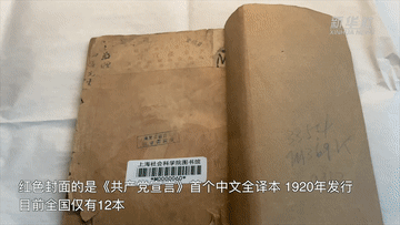 红色封面的是《共产党宣言》首个中文全译本,由陈望道翻译,于1920年发行,目前全国仅有12本。