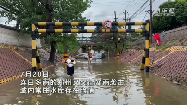 7月20日,连日多雨的郑州又突遭暴雨袭击,域内常庄水库存在险情。