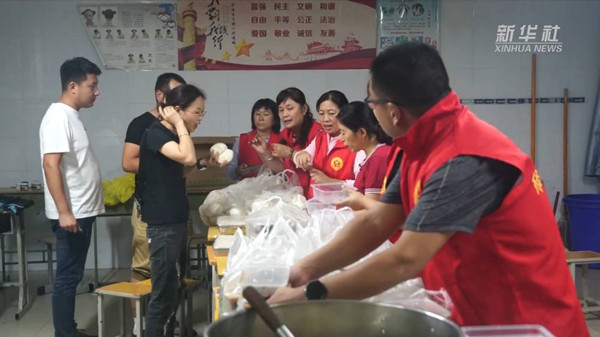 据介绍,为了保障转移群众的生活需求,安置点为群众免费提供充足可口的饭食,并和学校协调好了住宿问题。