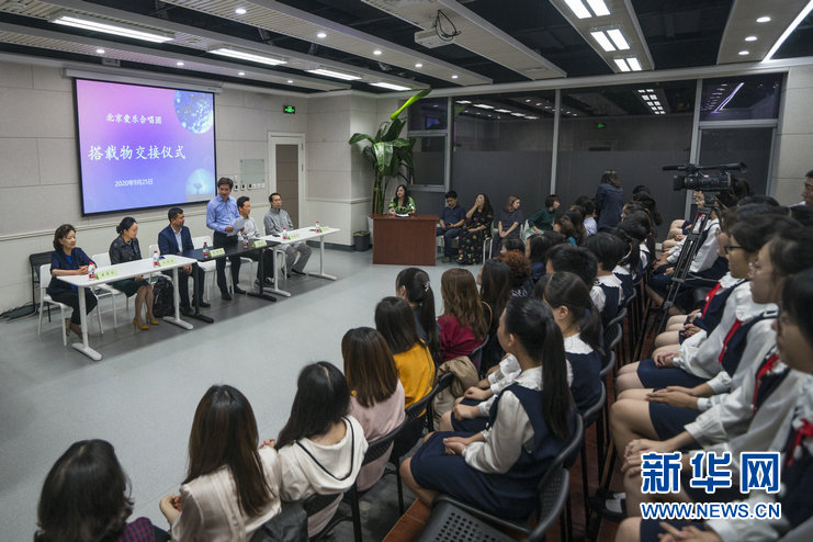 早在此次卫星升空之前,2020年9月25日,北京爱乐合唱团在长安兴融中心合唱教室举行了“北京爱乐合唱团卫星搭载物交接仪式”。出席此次活动的嘉宾有:“航升一号”卫星总设计工程师项军华博士,北京爱太空科技发展有限公司董事长白瑞雪女士,中国合唱协会副理事⻓兼秘书长李小祥先生,北京爱乐合唱团团⻓杨力教授,北京爱乐合唱团理事长唐重庆教授,北京爱乐合唱团理事蔡珍女士、赵琳老师、王天阳老师、冯向⻘老师以及合唱团的部分任课老师和团员。