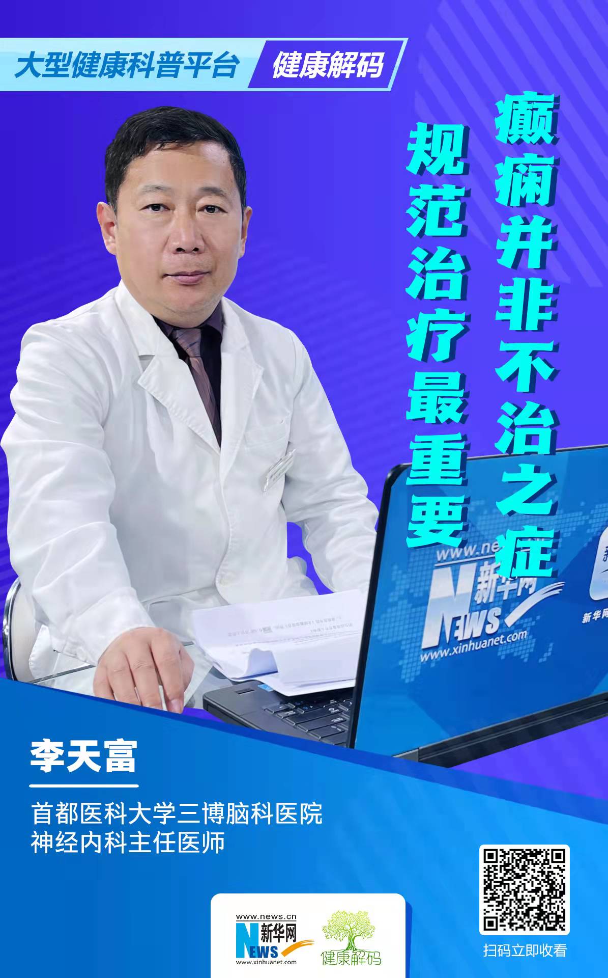 癫痫即俗称的“羊角风”或“羊癫风”,是大脑神经元突发性异常放电,导致短暂的大脑功能障碍的一种慢性疾病。当癫痫发作时,可能会导致例如肌肉僵硬、四肢抽搐、两眼上视、口吐涎沫、小便失禁甚至失去知觉等症状的出现。那么,对于癫痫这种慢性脑部疾病该如何治疗呢?今天我们邀请到首都医科大学三博脑科医院癫痫中心副主任李天富教授为大家进行讲解。