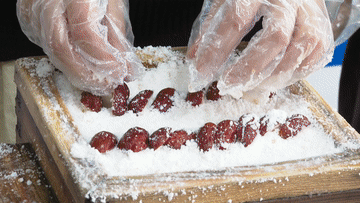一大早,上海市青浦区华新镇北新村的金阿姨就到自家菜地去挑青菜,霜打的青菜又糯又甜,再配上自己家腌的咸肉,就是父老乡亲吃了几十年的老味道。咸肉要肥瘦相间的五花肉,用花椒和粗盐反复的揉搓,经过石板的压制,再挂在太阳下晾晒十天左右,直到表面出油,鲜香扑鼻。
