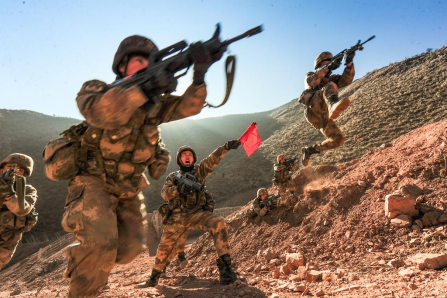 驻藏第77集团军某旅“阳廷安”班开展单兵战斗动作训练(2021年1月2日摄)。新华社发(郭朋 摄)