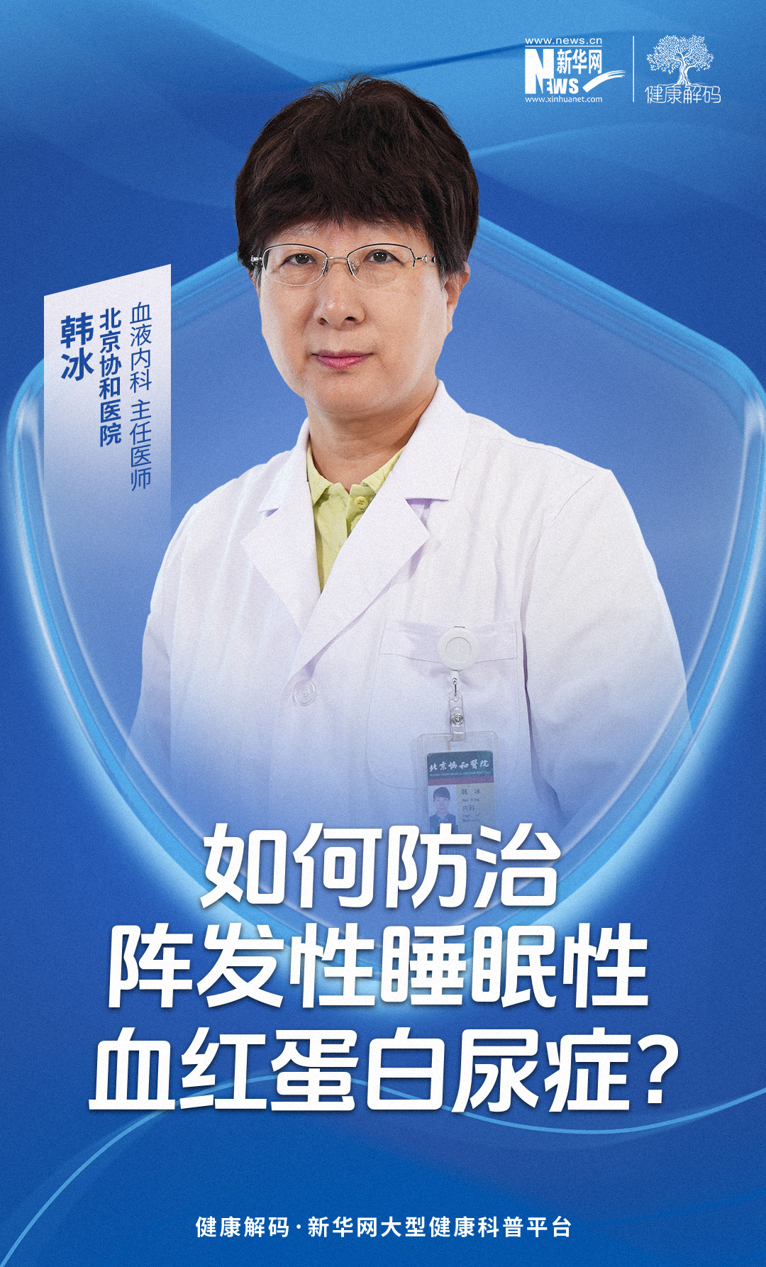 韩冰:阵发性睡眠性血红蛋白尿症是一种超级罕见病,它的发病原因属于基因突变导致的补体调节蛋白在红细胞表面的缺失。最主要的表现是血管内溶血,以及其他表现,包括血栓形成、骨髓衰竭、血细胞减少,病人会出现感染和出血的情况。