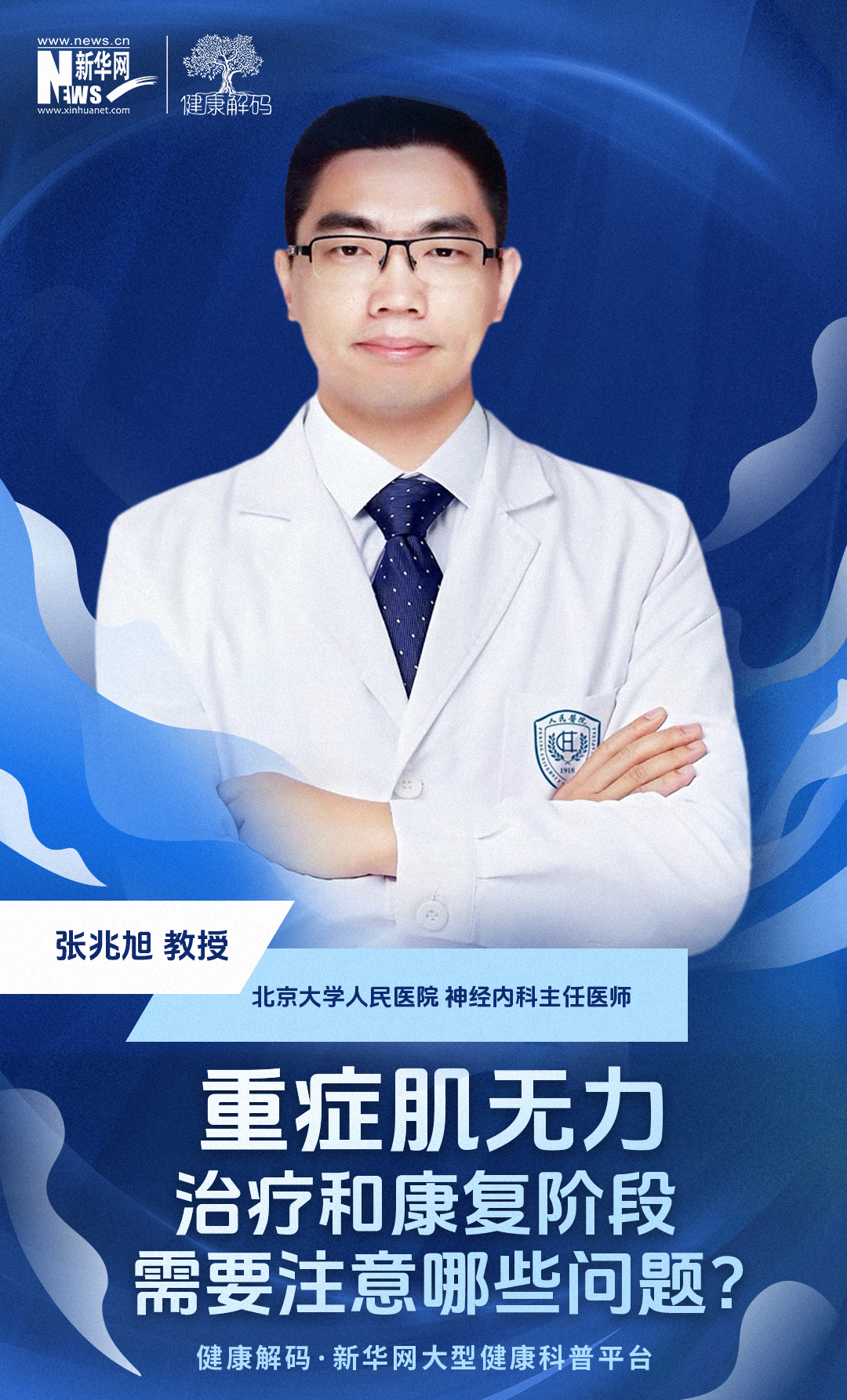 治疗后的重症肌无力患者可能出现复发的情况,那么在日常的生活中,患者从营养、运动、心理等不同方面需要注意什么呢?本集我们邀请了北京大学人民医院神经内科主任医师张兆旭教授分享重症肌无力治疗和康复阶段,患者和家属需要注意哪些问题?