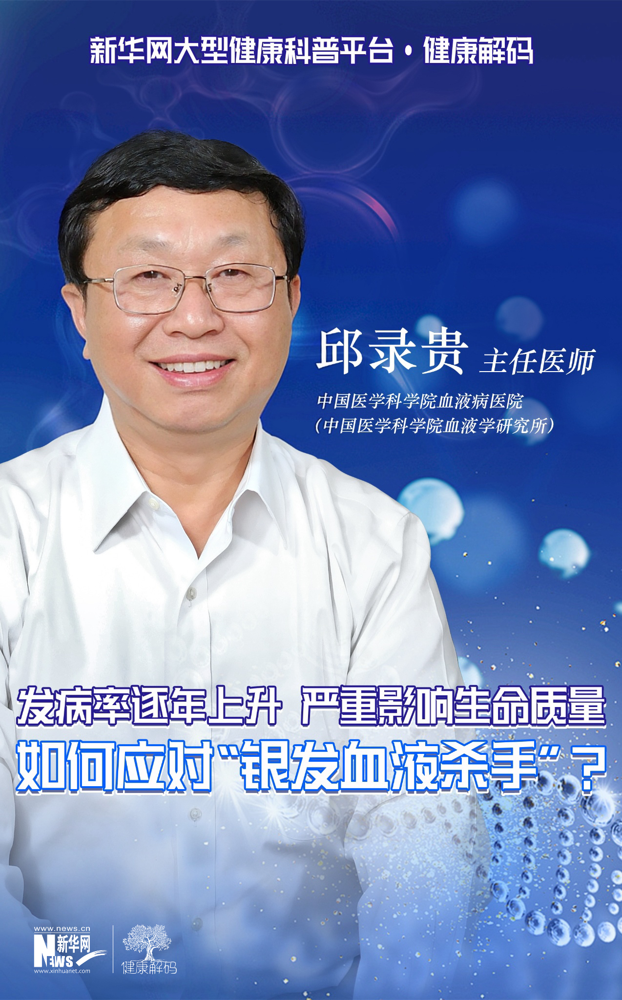 近期,中国医学科学院血液病医院牵头组织的《中国多发性骨髓瘤诊疗现状及患者生存质量2023蓝皮书》发布,通过对患者真实的治疗现状和临床诊疗模式的系统调研,了解患者和医生端诊疗未被满足的需求,进一步驱动规范化诊疗体系的建设。本期健康解码,我们邀请到了中国医学科学院血液病医院(中国医学科学院血液学研究所)主任医师邱录贵教授分享蓝皮书的关键发现,并带来多发性骨髓瘤专业科普。