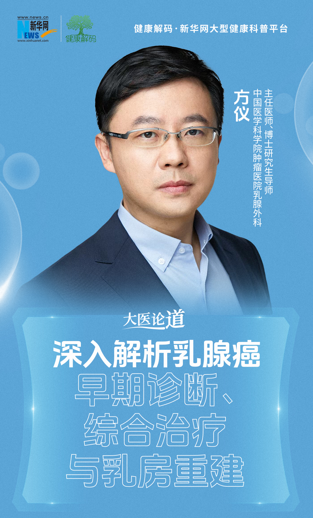 本期《大医论道》栏目邀请了中国医学科学院肿瘤医院乳腺外科主任医师、博士研究生导师方仪教授,与我们一同深入探讨《深入解析乳腺癌:早期诊断、综合治疗与乳房重建》。