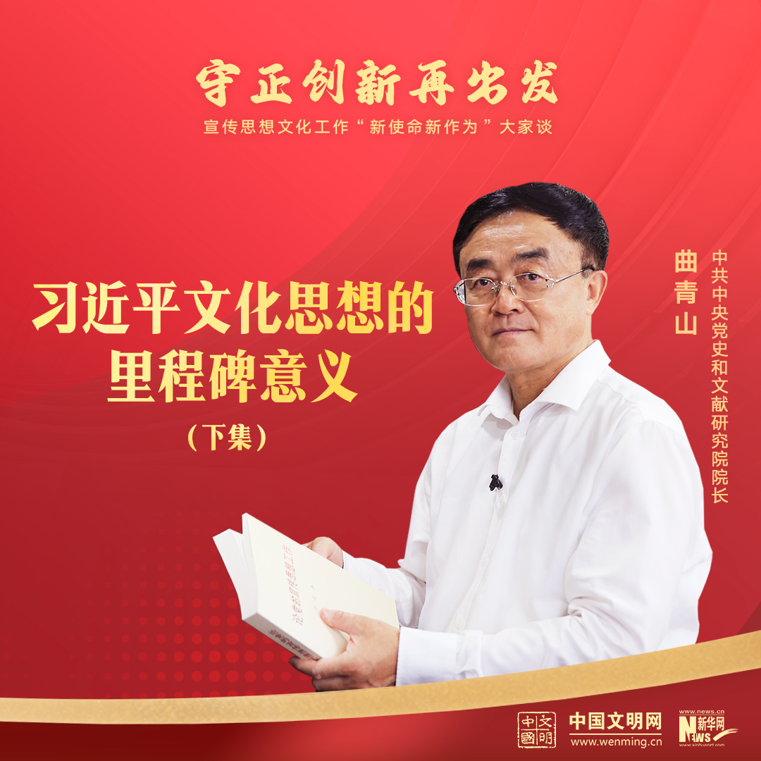 《守正创新再出发——宣传思想文化工作“新使命新作为”大家谈》本期邀请中共中央党史和文献研究院院长曲青山,详细解读习近平文化思想的科学内涵以及中共中央党史和文献研究院在推动习近平文化思想学习宣传贯彻方面的具体举措。