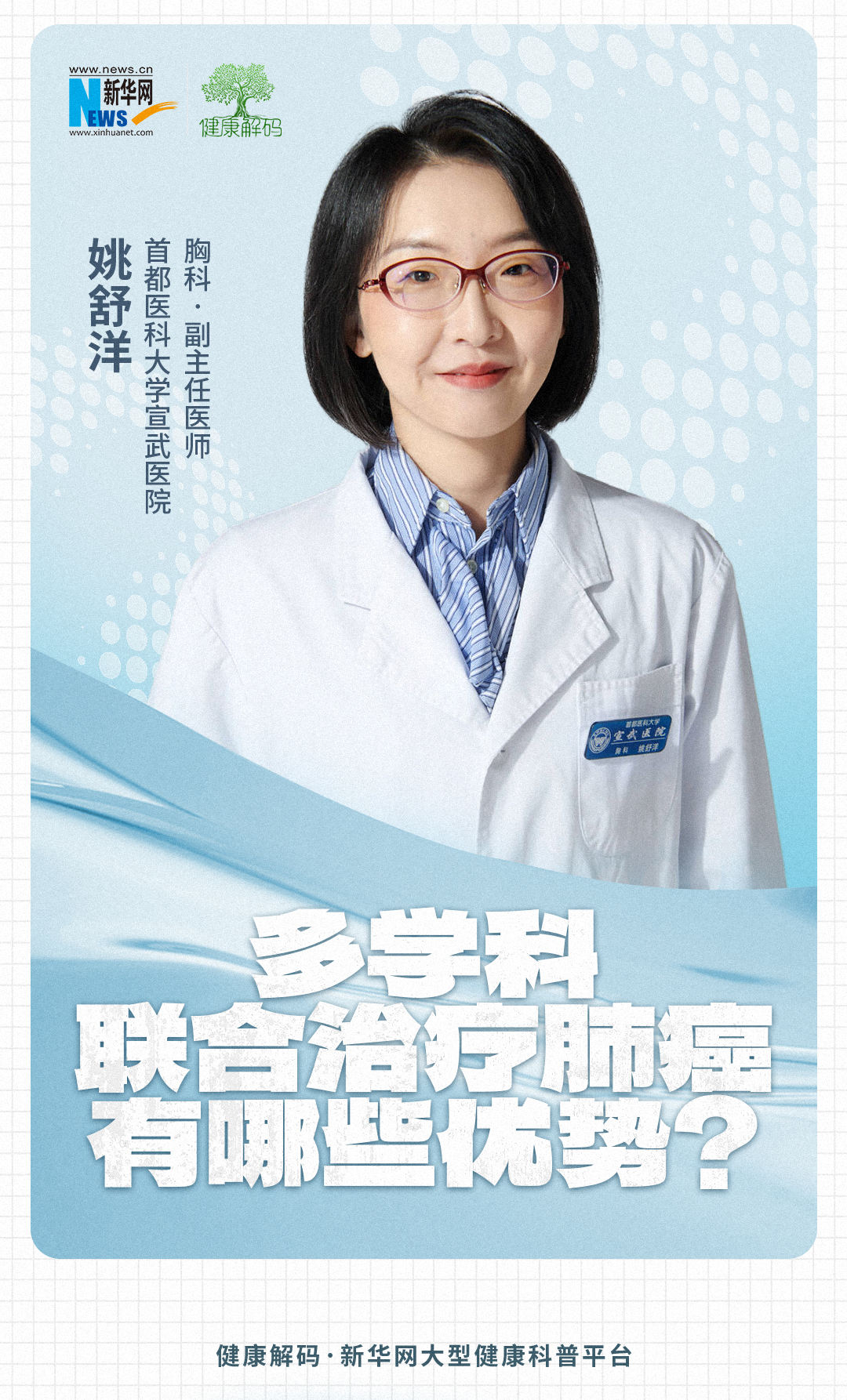 本集节目我们邀请了首都医科大学宣武医院胸科副主任医师姚舒洋分享《多学科联合治疗肺癌有哪些优势?》。