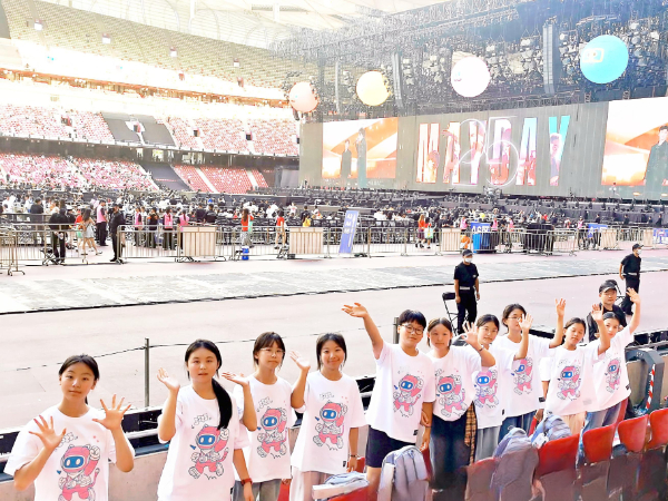 傍晚时分,鸟巢与水立方的轮廓在夕阳下格外清晰。当老师告诉孩子们“今晚这里将有一场音乐盛宴”时,原本安静的队伍瞬间沸腾。晚上七点,鸟巢的灯光骤然亮起。当《倔强》前奏响起,全场数万人的合唱如浪潮般涌来,孩子们站在这片曾见证奥运荣光的场地里,完成了一场关于 “勇气”的集体洗礼。孩子们踮着脚跟着节奏挥舞荧光棒,起初的羞涩渐渐被旋律融化,动作从生疏到熟练,脸上的笑容越来越灿烂。当歌曲高潮部分来临,孩子们甚至跳了起来,完全忘记了最初的羞涩。