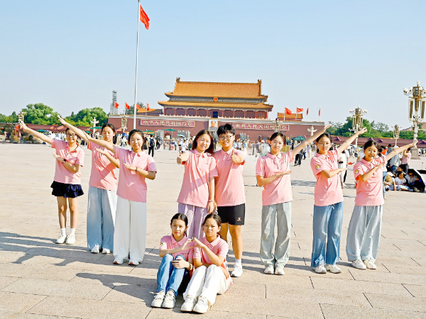 迎着晨光踏入天安门广场,站在庄严肃穆的人民英雄纪念碑前,孩子们认真聆听革命先烈的故事。迎风飘扬的五星红旗让每一个人心中都涌起强烈的自豪感,孩子们在广场上合影,身后是飘扬的五星红旗。研学之旅让红色基因在女孩们的心中悄然扎根,也让爱国情怀在亲身体验中愈发浓厚。