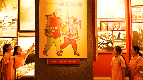 走进中国共产党历史展览馆,就像翻开了一本厚厚的红色故事书。广场上,巨型党旗雕塑《旗帜》鲜红如炽,“如果信念有颜色,那一定是中国红”的感慨在众人心中共鸣。展厅内,从南湖红船的微缩模型到长征路上的草鞋,从抗战时期的步枪到改革开放后的经济特区图景,一张张图片、一件件实物串联起中国共产党百年奋斗的峥嵘岁月。