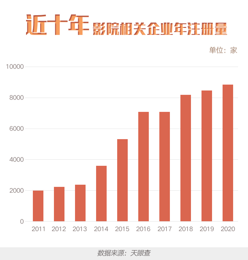 数据显示,截至2月2日上午8时50分,春节档电影预售总票房已达2.11亿元。据天眼查大数据显示,我国目前共有超过5.3万家影院相关企业。其中,2020年,全国共新增超8,000家影院关联企业。近年来,影院相关企业增速均保持在15%左右。分地域来看,全国多个一二线城市中,北京拥有的影院关联企业最多,超3,700家,其次为深圳、广州、上海和成都。
