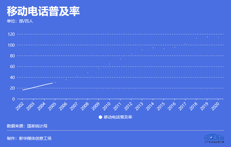 工业和信息化部最新数据显示,2020年,移动电话用户普及率为113.9部/百人,与2002年的16.19部/百人相比,增长了近100部/百人,可以称得上“人手一部手机”了。