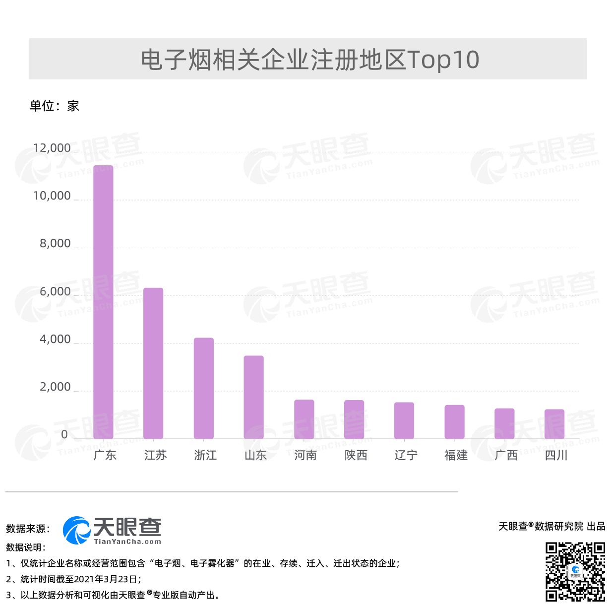 电子烟行业已经在全球范围内显露不可小觑的发展趋势,在中国也总体呈现上升趋势。天眼查专业版数据显示,目前我国共有超4.7万家企业名称或经营范围含“电子烟、电子雾化器”。从地域分布上看,广东的电子烟相关企业数量最多,超1.1万家。据界面新闻此前报道,全球90%的电子烟都出自深圳宝安区,这里已经成为全球最大的电子烟生产基地,被称为“全球雾谷”。