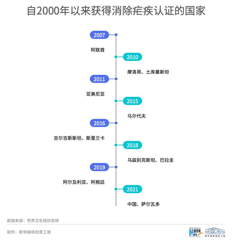 消除疟疾认证是世卫组织对一个国家无疟疾状态的正式承认。根据世卫组织的标准,一个国家或地区连续3年没有本土疟疾病例,并建立有效的疟疾快速检测、监控系统,制定疟疾防控方案,才能获得消除疟疾认证。全球范围内目前已有40个国家和地区获得世卫组织颁发的无疟疾证书。
