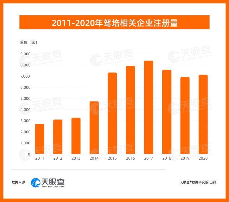 值得注意的是,2017年是我国驾培相关企业(全部企业状态)年度注册数量最高的一年,当年新增驾培企业超过8千家。以工商登记为准,2021年前5月新增驾培相关企业近3,200家,同比增长42.8%。