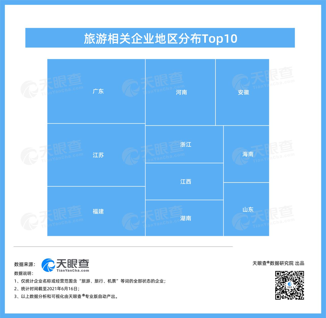 从地区分布来看,江苏省的旅游相关企业最多,有超过38万家,占比10%。其次是广东省,有近37万家相关企业,占比9%。另外,山东省也有近30万家旅游相关企业,排第三位。