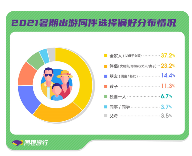 数据显示,37.2%的受访者选择和父母子女等家人一起出游,选择与伴侣一起出游的占比23.2%,选择与朋友一起出游的占比14.4%,选择与孩子一起出游的占比11.3%。亲子家庭客群构成了每年暑期旅游市场的基本盘,“全家一起游”的回归对于市场恢复将是一个积极信号。
