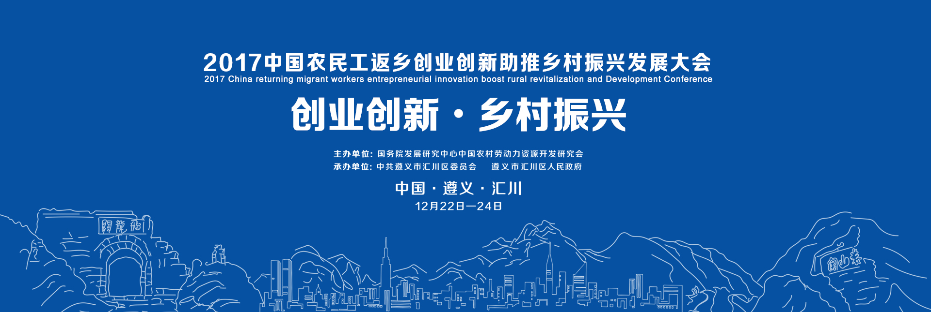 2017年12月23-24日由国务院发展研究中心中国农村劳动力资源开发研究会主办,中共遵义市汇川区委、汇川区人民政府承办的2017中国农民工返乡创业创新助推乡村振兴发展大会在贵州省遵义市举行。本次大会旨在通过研讨交流、经验总结,系统研究农民工返乡创业创新助推乡村振兴的典型案例及经济社会发展政策。