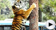 动物园老虎上树捕食