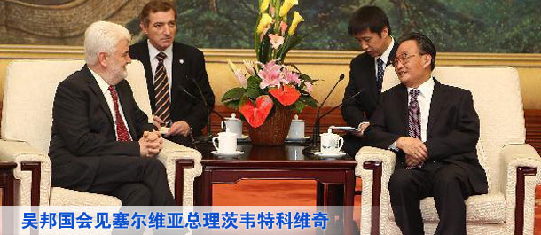 吴邦国会见塞尔维亚总理茨韦特科维奇