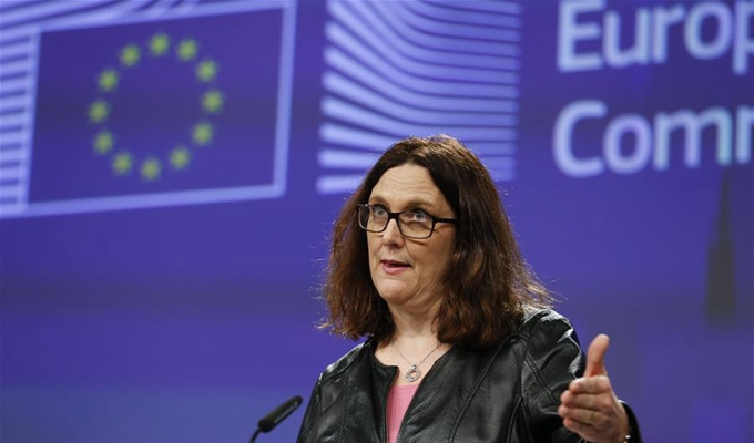 欧盟贸易委员塞西莉亚·马尔姆斯特伦18日说,美国加征钢铝关税举措正在扭曲全球贸易并可能破坏世界经济增长前景,是“纯粹的保护主义”行为。