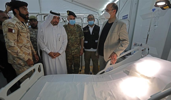 黎巴嫩首都贝鲁特港口区发生爆炸后,多家由外国援助的野战医院6日搭建完成并投入使用。