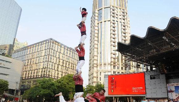 西班牙“叠人塔”旋风登陆上海滩