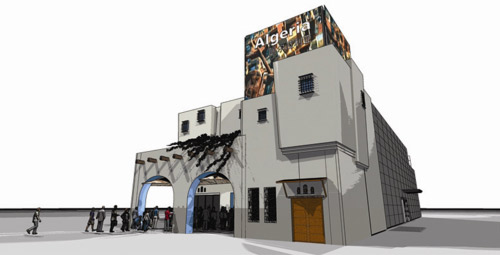 | 展馆形状整体借鉴了阿尔及利亚城市建筑遗产——卡什巴旧城区的要素,充分展示了北非和阿尔及利亚传统的建筑风格。参观者可在馆内仿建的“街道”中漫步,观赏名为《漫步卡什巴》的短片,然后登上“城市”的顶层,俯瞰刚刚穿过的街道,深度体验古老而又现代的阿尔及利亚。 |