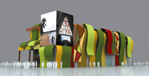 展馆外墙以非洲木雕为装饰,张扬安哥拉的民族特色。馆内展品包括富有民族特色的雕刻和绘画,融合展区的现代科技展示手段,不仅表现出安哥拉与水难以割舍的渊源,也对其城市发展的可持续性进行了探索和展示。