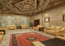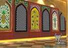 | 伊斯兰装饰风格伊斯兰装饰艺术源于“阿拉伯式图案”,其中,几何图案是伊斯兰装饰艺术的最重要标志,圆形、方形、菱形、多边形、星形等各种图形形成纹饰,与相对应的数字含义巧妙地编织在图案中,营造出错综、繁复、无止尽的视觉效果。巴基斯坦馆的内部装饰充分运用了该特点,营造了地道的异域风格。 |