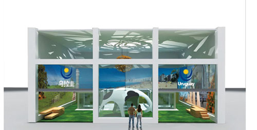 | 展馆以蓝、绿两色为主色调,围绕闻名于世的巴拿马运河模型展现以蓝天绿草为背景的现代化城市。在“运河船闸模拟区”,巴拿马运河模型完全按照改建后的运河的原理修建,并能模拟运河开闸时的情景,展现货轮起航时壮阔的场面。“水幕墙”区域采用钢化玻璃和水循环系统形成水幕造型,展示巴拿马运河的实际运行状况及其连接大西洋和太平洋的重要作用。“LED视频区”播放介绍巴拿马现状和当地风情的视频。 |