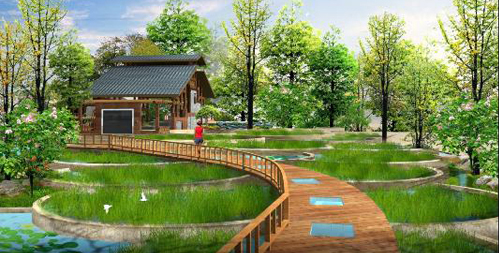活水公园案例取鱼水难分的象征意义,将鱼形剖面图融入公园的总体造型,喻示人类、水与自然的依存关系。微缩版活水公园的建成,将成为上海世博会一道靓丽风景线,最大限度凸显成都“林水相依、天人合一、城乡统筹、和谐发展”的现状,向来自全球各地的参观者展示成都“宜居、宜游、宜投资”的城市特色。