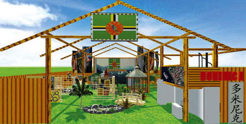 展馆造型简洁,以绿色为主色调。馆内分为五个区域:“多彩生活”展区、“绿色动力”展区、“多彩国度”展区、“休息休闲区”和“工作区”,馆内设有小桥、微型风车、茅草小屋等,从多角度展现多米尼克国内清洁能源的开发利用和长远规划,表达了多米尼克希望通过发展绿色环保能源,建设绿色的、生态的、环保的城市和乡村环境,展现一个绿色和谐的国度。