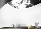 | 展馆二楼展厅被分成三个部分,第一部分是欢迎区,被称作芬兰精灵的虚拟向导将与讲解员一起陪伴参观者,让他们对展览内容有多方面的了解。第二部分则通过一幅幅壮观美丽的画面和景象,清晰地展现芬兰精神的本质。这些场景与自然、国家特色、社会、文化、经济和教育环境之间的深层联系转化成了一个虚拟的世界,和现实紧密相连。第三部分构建了梦想之城,以互动的方式表现芬兰创造“更美好生活”的基本要素,表明芬兰愿与他人分享解决方案,交流思想,共同为争取一个均衡与可持续发展的未来而努力。 展厅空间设计实用而简洁,形似雪窟和浮云的结构悬在空中,在灯光的辉映下显得格外美丽。它们将地板与楼顶之间的一切空间元素相连,其中包括内墙上悬挂的一幅纺织艺术品,这也是世界上最大的纺织艺术作品之一。 整个视听空间没有文字说明,也完全没有言语解说。安静的背景音乐,令人难以忘怀的互动式动画以及舞台上讲解员偶尔呈现的短剧表演使参观者能够以自己的节奏,充分享受参观之旅。 |