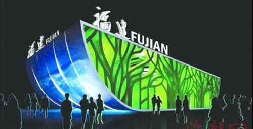 | 福建馆的展示内容将以“绿色宜居城市”为主要内容,向人们表达海峡西岸的发展方向。展馆分为实体区、互动区、展演区以及精品区。 在实体区中,高科技LED显示屏模拟出九曲溪,还有武夷山、鼓浪屿、妈祖像等实景模型。 互动展区中设有三个直径两米的大圆球,分别用福建特色的脱胎漆器、德化白瓷和漆线雕工艺制作。每个球上面都有一组经艺术家创作的精巧图案,分别展现“开放前沿”、“缘通两岸”与“和谐家园”的相关内容。 福建土楼和闽南古厝造型的建筑成为馆内的展演区,将分时段通过茶叶、瓷器、漆器、海上丝绸之路等元素,以讲故事的形式展现福建城市、文化以及生活的历史变迁。 精品区位于土楼造型的二楼,采用典雅的红木仿古装饰,将展出各种珍贵藏品、文物。 |