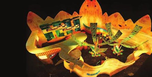 非洲联合馆是上海世博会最大的联合馆,馆内有43个独立展馆,分别为42个非洲国家和非洲联盟,数量达历届世博会之最。展馆外立面的图案设计具有强烈的非洲元素和特征:繁茂葱郁的非洲大树,象征非洲大陆强大坚韧的生命力;盘亘粗壮的树根深深扎入地下,暗示非洲是人类的起源地;树根汲取营养让大树向着辽阔的天空自由生长,象征着非洲从本土文化根源摄取力量,必将造就一个充满希望和机遇的大陆;沙漠、动物、建筑物勾勒出非洲大陆自然并具有多样性的风貌,象征着古老而充满生机的非洲大陆。馆内还有一个公共展演区域,由公共舞台、真人秀台及专题展区组成。 |