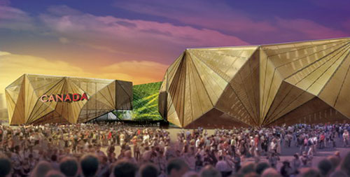 | 展馆由三幢大型几何体建筑组成,展馆的中央是一片开放的公共区域,参观者可以既可以通过这个公共区域进入展馆。根据加方预计,加拿大展馆将吸引总共550万名访客前来参观,平均每日多达3万人次。 建筑上处处体现了可回收利用的技术。展馆外部墙体将由一种特殊的温室绿叶植物覆盖,雨水也将被排水系统回收,在展馆内需要水的地方重新使用。为了让展示区域的空间最大化,展馆内部将禁止摆放大型展品和物件,以确保展示区域内的空气流通和视野开阔。同时,馆内将营造一个无障碍和无烟的环境。 |