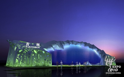 | 吉林馆的主题是“长白山下放歌行”,设计者充分借助“师法自然”的手法,不仅在展馆外形上参考了长白山山脉的形象,并通过多媒体手段展现长白山的鸟语花香。在互动体验区,参观者将受到喷射冷气的“袭击”,感受到阵阵寒意的同时欣赏到吉林雾凇的奇妙美景。 |