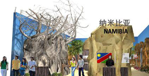| 展馆入口处是一座令人印象深刻的大象岩,侧面矗立着一棵高大的猴面包树。展馆围绕探索、发现和梦想三个副主题,演绎纳米比亚的传统生活方式、城市社区的重塑、自然和野生动物保护等方面的成就,展示一个绚丽斑斓的纳米比亚。参观者进入展馆,顺着具有浓烈传统风格的路标,就可穿越美丽的鱼河峡谷和吕德里茨、斯瓦科普蒙德等1 1个纳米比亚主要城市和地区。展馆内设有纳米比亚特色小棚供参观者休息,并提供当地的特色美食。馆内所有的工作人员都是纳米比亚当地人,给参观者身临其境的感受。 |