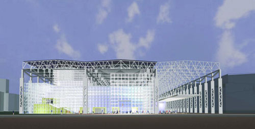 日本产业馆位于上海世博会浦西园区入口附近、原江南造船厂的老厂房内,将利用约4000平方米的旧厂房进行改建。日本产业馆的事业概念是“再利用、空间感、脉动感”,特别是贯彻了重视环保的再利用。内部装修将大量采用再生纸纸管,工作人员的制服也使用了旧衣服循环利用后的布料。 详细>>
