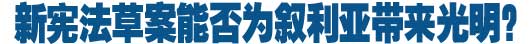 | 叙媒体报道称,叙利亚宪法草案制定全国委员会于7日宣布完成对新草案的制定,12日向总统巴沙尔提交了宪法草案。新草案规定,叙利亚将建立多党制的广泛联合政府,叙总统任期为7年,可以连任一届。